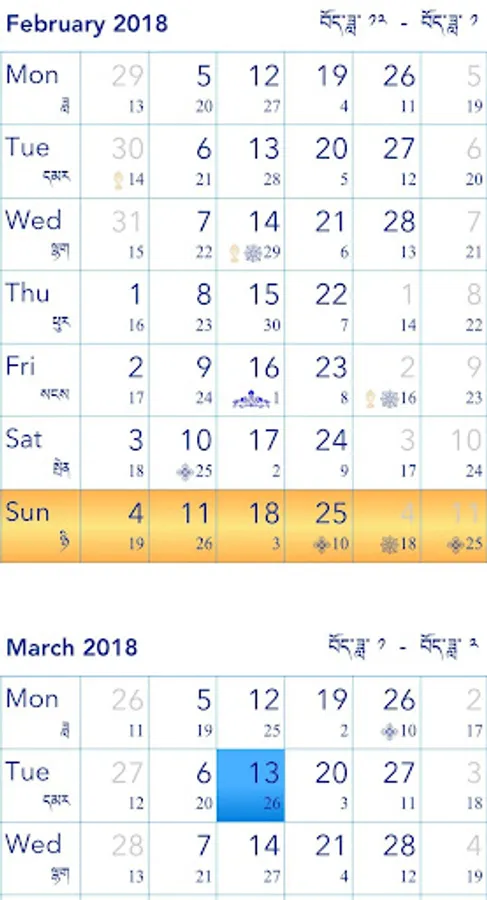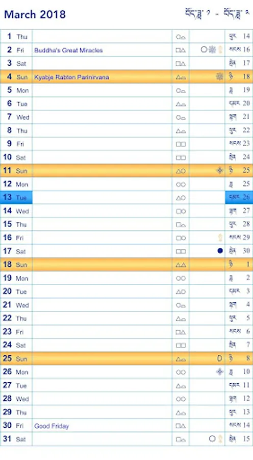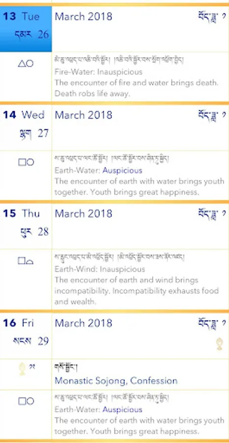 Tibetan lunar calendar combined with Western calendar, specifically designed for practitioners of Tibetan Buddhism: