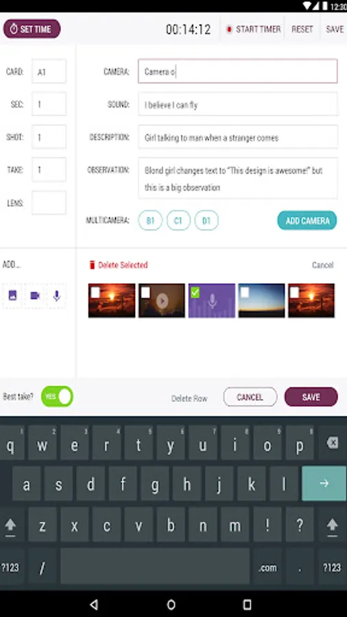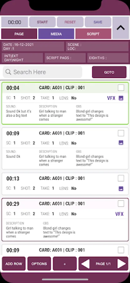 Create reports in seconds, for Script Supervisors, Camera or Production assistants. Professional reports in your phone. Share in seconds