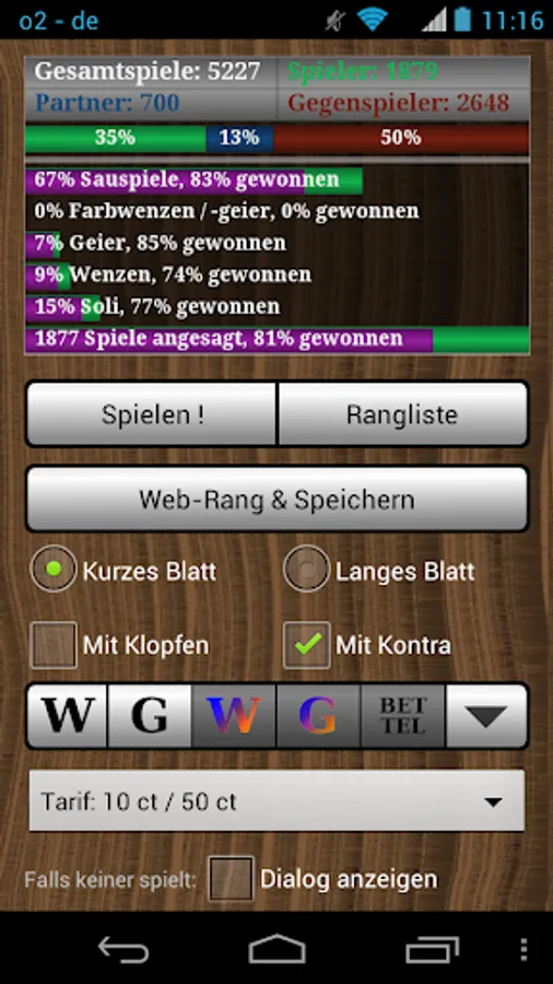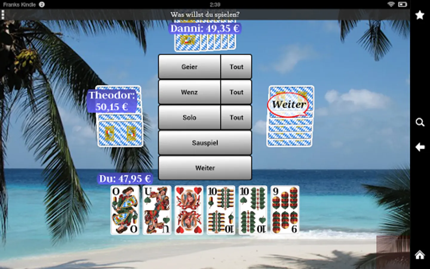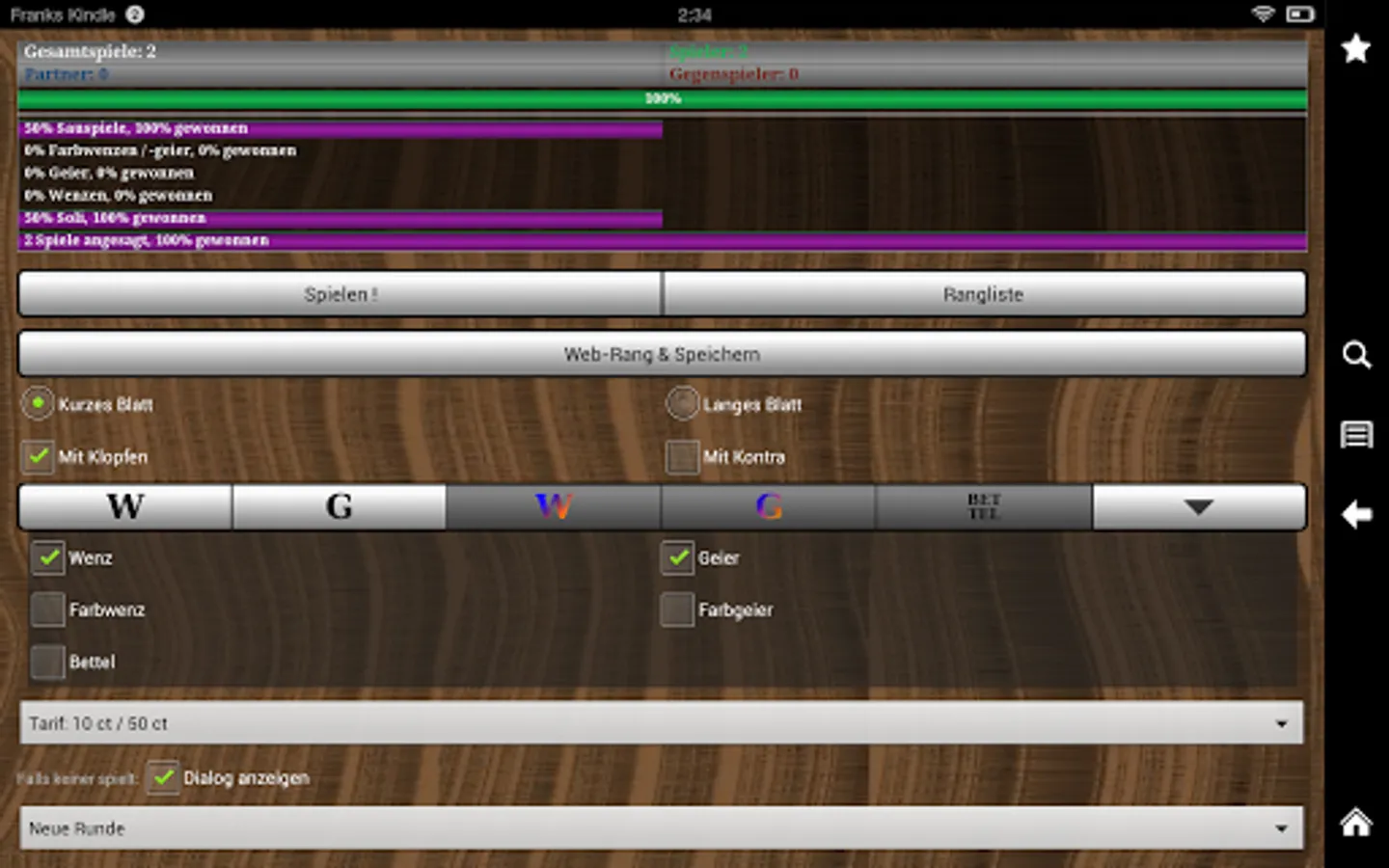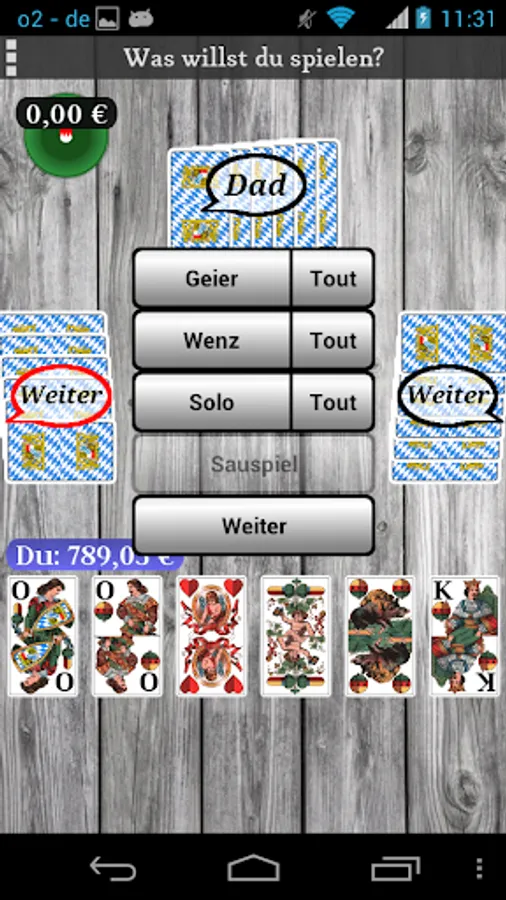 Sauspiel, Solo, Wenz, Geier, Farbwenz, Farbgeier, Bettel (selectable)