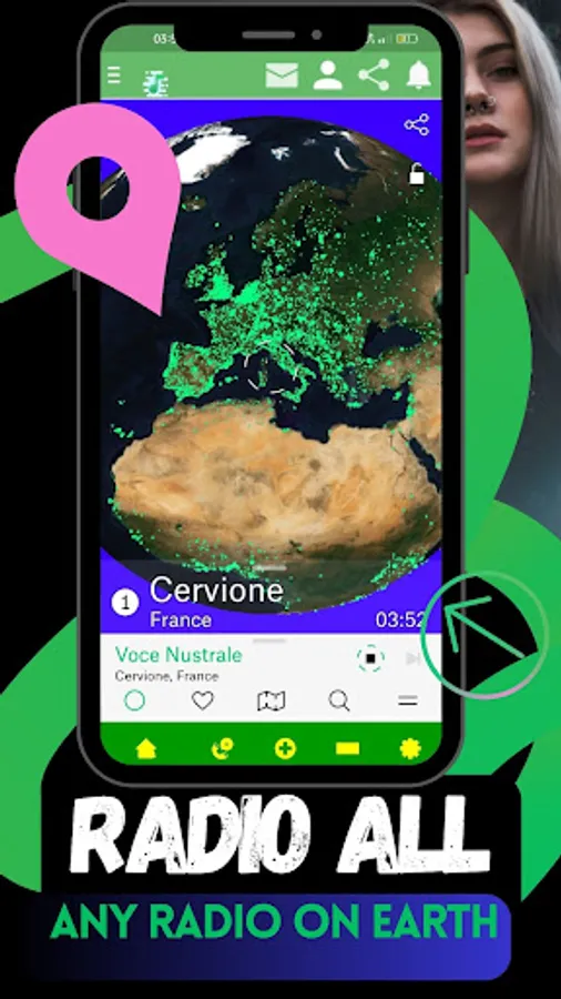 Explore the globe from the comfort of your phone. With the Radio All app, you can listen to any radio station in the world without restrictions. Navigate the Earth map, locate radios in any country, and immerse yourself in a global music experience like never before.
