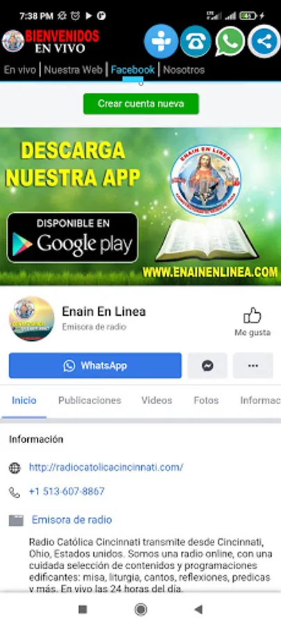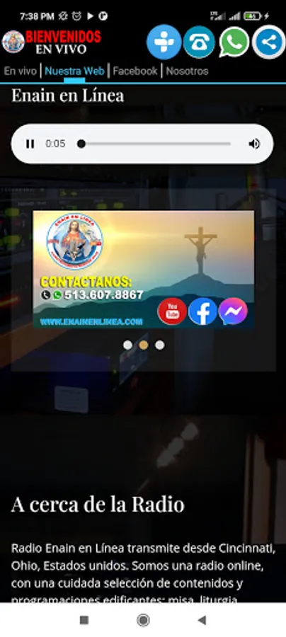 Enain en Linea broadcasts from Cincinnati, Ohio, United States. We are an online radio, with a careful selection of content and edifying programming: mass, liturgy, songs, reflections, preaching and more. Live 24 hours a day.
