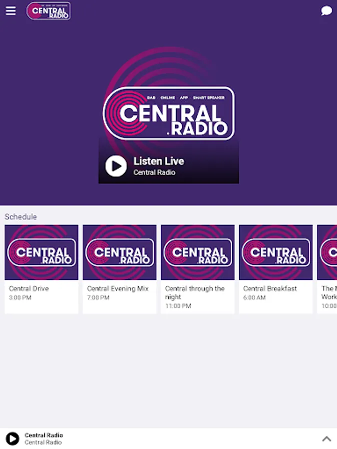 Use our app to contact the studio, find us on social media, read more about the track you just heard just played or look at the stations schedule to find more info on our shows and presenters. Our app really is a one-stop shop for all things Central Radio.