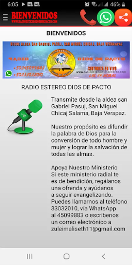 If this radio ministry is a blessing for you, give us an offering and help us to continue evangelizing. You can call us at 33032010, via WhatsApp at 45099883 or write us an email at zuleimaliseth11@gmail.com
