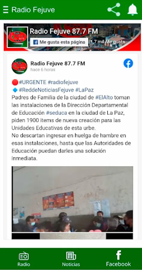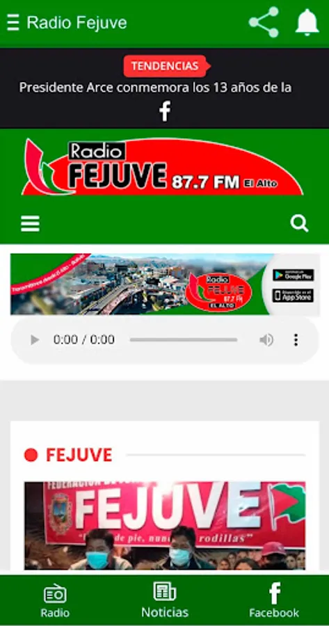 Radio Fejuve 87.7 FM is a station that transmits from the city of El Alto, it accompanies you every day, with programming according to the expectations of our city, we reflect the experience of our people with information and music.