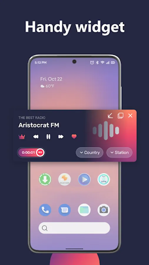This 📻 AM FM Radio is one of the most popular in the radio apps for Android category. It features a lot of FM stations and a handy tuner radio player.