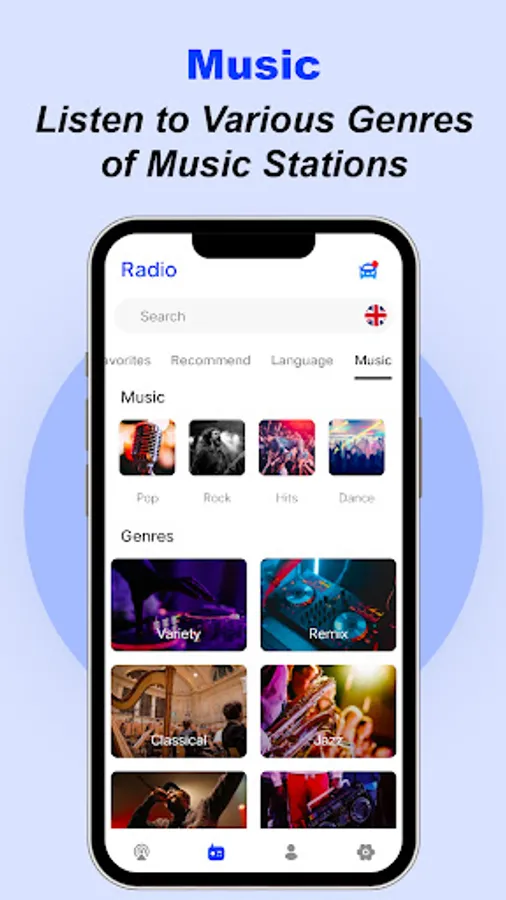 · Explore: Search your favorite radio stations by name language, genre, country.