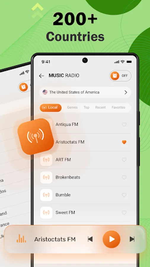 ⚡️ Access to a wide variety of local radio stations. The FM Tuner offers access to a diverse range of stations from around the world, including 30000+ local channels in 200+ countries around the world (for example 98.1 FM, 104.7 Kiss FM, La Mega 97.9, KEXP, KCRW, NRJ, 104.6 RTL, BBC FM, NPR, MRN, WABC, KNBR 680, WNYC, ect.).