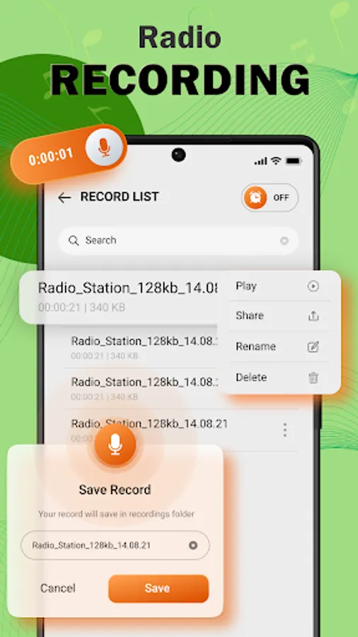 ⚡️ Set an music alarm clock and timer with your favorite live radio station. Wake up or fall asleep to your favorite songs.