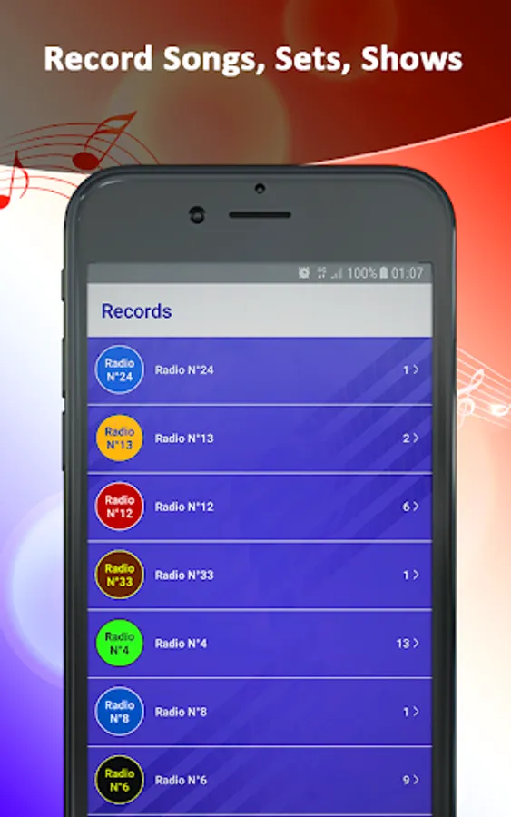 - The application allows you to record your favorite radios