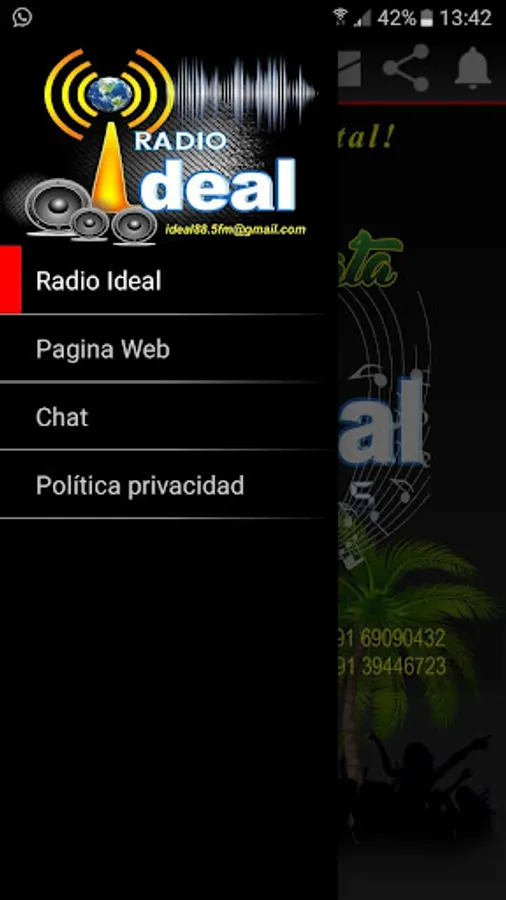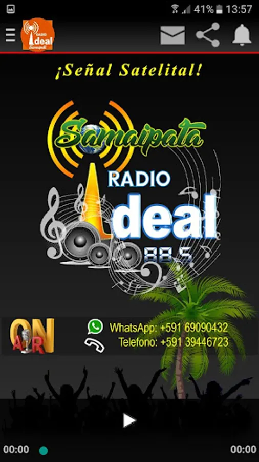 Modulated Frequency 88.5Mhz "IDEAL Radio", SOUNDS WITHOUT STOPPING. 24 hours of good company, 24 hours of success alone, day and night. HERE EVERYTHING IS IDEAL, "Live the Music".