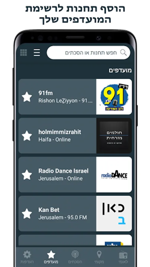 With Radio Israel you can listen to the best internet radio stations and follow your favorite shows and podcasts for free. You can choose amongst sports, news, music, comedy and more.