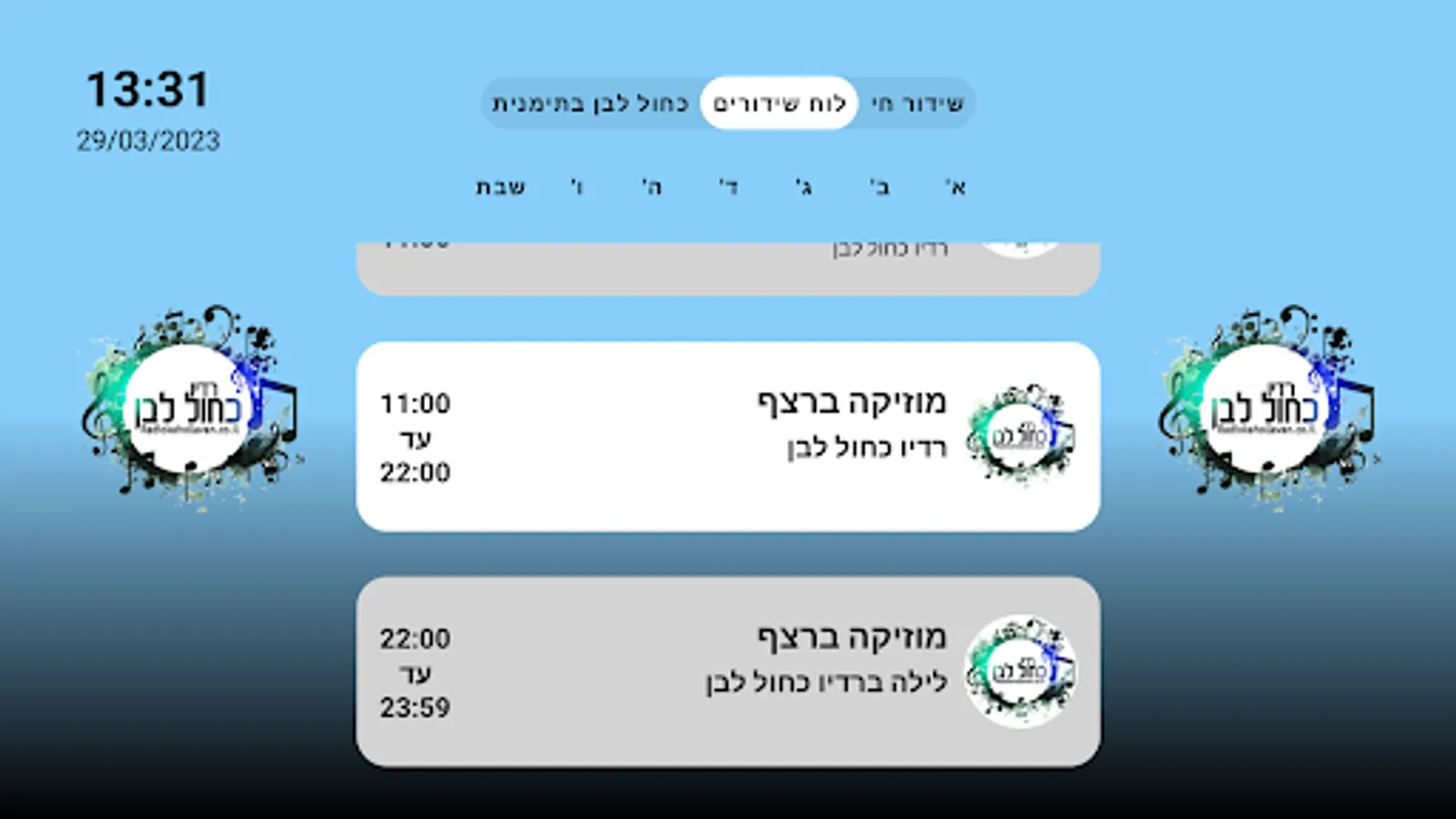 The radio broadcasts are not active on Saturdays and Israeli holidays.