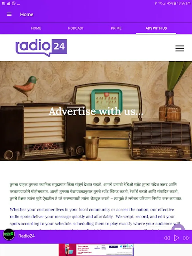 Radio24 for mobile and website is an app to play internet radio station. Radio24 allows you to listen and enjoy a variety of genres like classical, rock, pop, gospen, songs, music, talks, news, comedy, concerts and other variety for program made available by for artists, radio jockey.