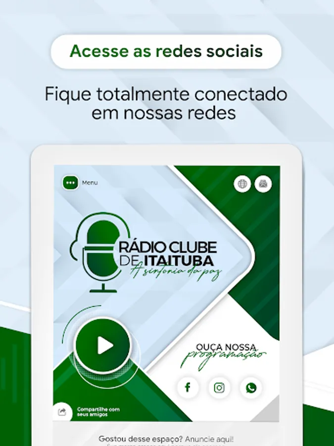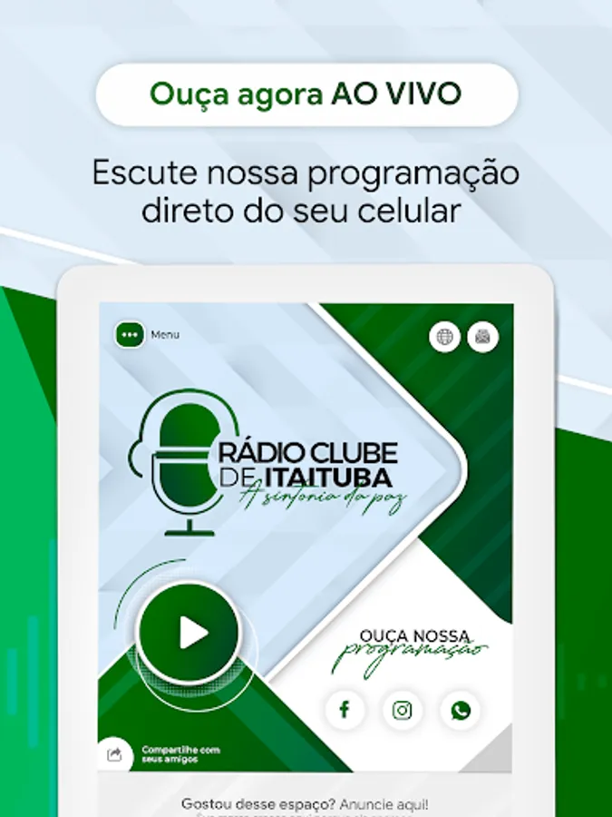 Itaituba radio club brings you a program exclusively focused on the gospel of Jesus Christ, announcing the good news of salvation. With a varied gospel music repertoire and programs that will help you build your faith.
