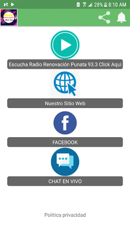 - You will have the option to share our application of Bolivia Radios live on all Social Networks.