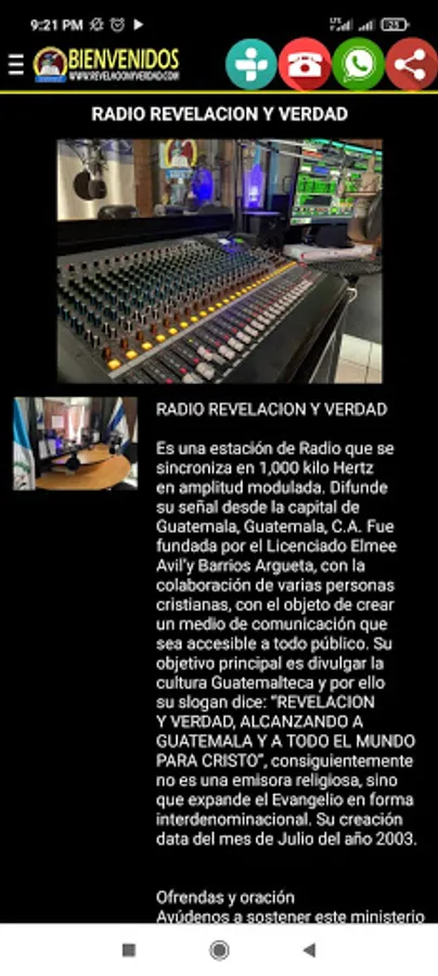 It is a Radio station that is synchronized at 1,000 kilo Hertz in amplitude modulation. It broadcasts its signal from the capital of Guatemala, Guatemala, C.A. It was founded by Mr. Elmee Avil’y Barrios Argueta, with the collaboration of several Christian people, in order to create a means of communication that is accessible to all audiences. Its main objective is to disseminate the Guatemalan culture and therefore its slogan says: "REVELATION AND TRUTH, REACHING GUATEMALA AND THE WHOLE WORLD FOR CHRIST", consequently it is not a religious station, but rather expands the Gospel in an interdenominational way. Its creation dates from the month of July 2003.
