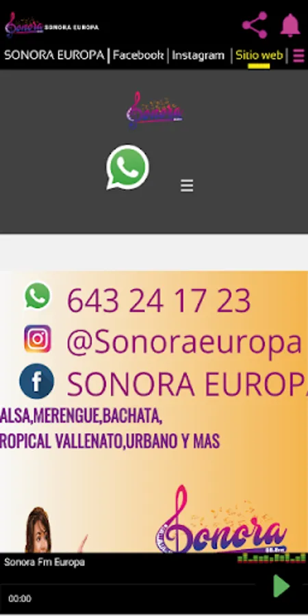Sonora Fm Europa The music you want to listen to Latin station broadcasting from Madrid Spain 24 hours a day