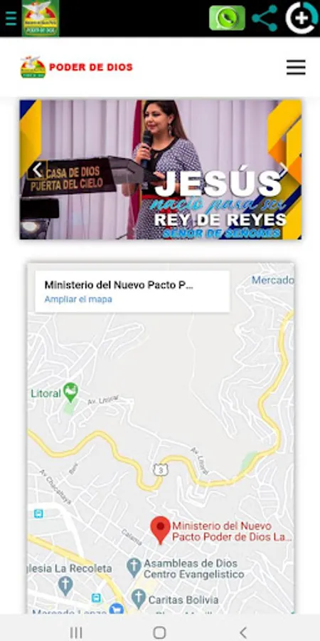 The Ministry of the New Power of God Pact has central churches in the cities of La Paz, Cochabamba, Santa Cruz and Buenos Aires - Argentina.