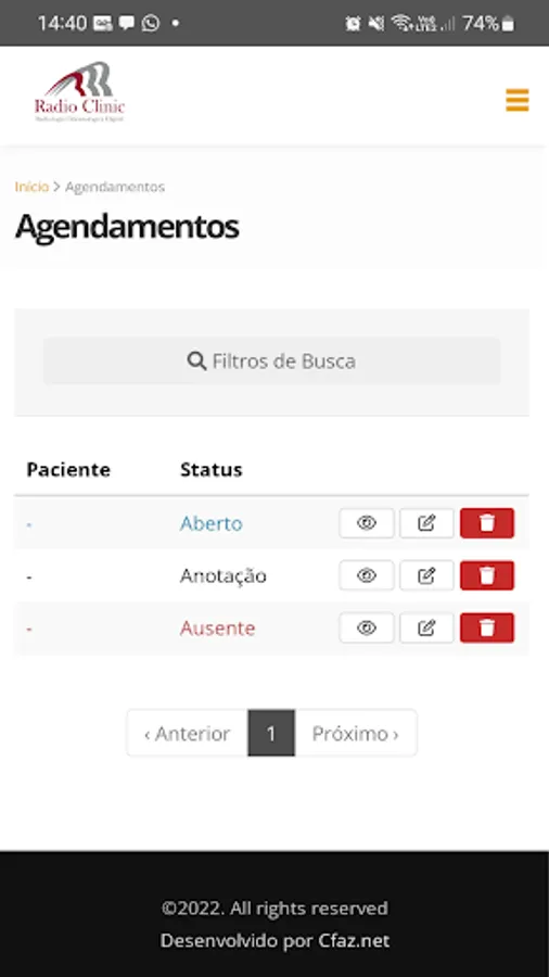 It is also possible to make appointments, PEP (Electronic Patient Record), Integration with any equipment that uses the DICOM protocol (PACS/Worklist), Financial Management, Control of Agreements and Glosas, everything can be accessed from anywhere by the clinic administrators.