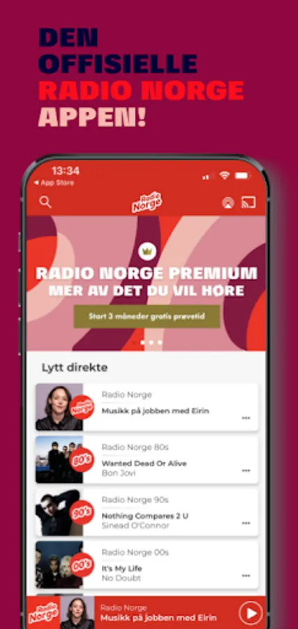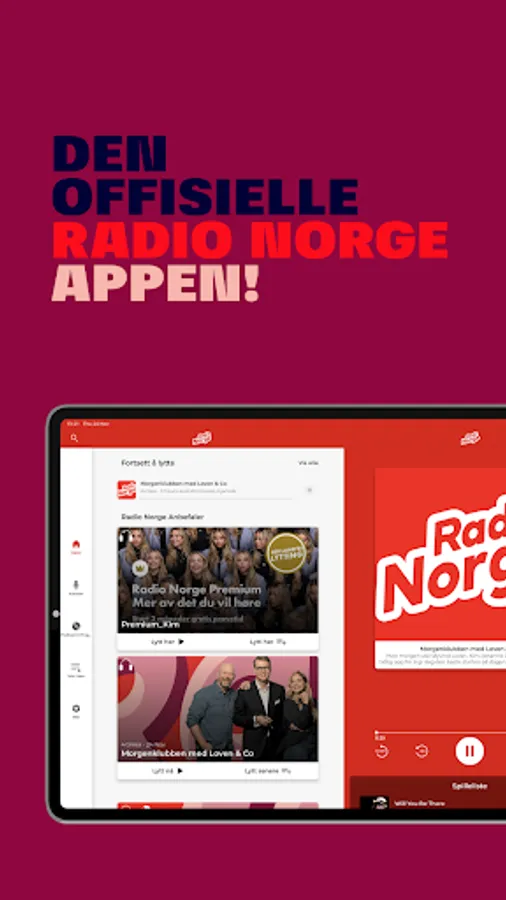 This is the official Radio Norway app! It can be a good alternative to DAB + radio while on the move. Radio Norway always gives you the greatest classics from the 70-80-90s mixed with good entertainment throughout the day.
