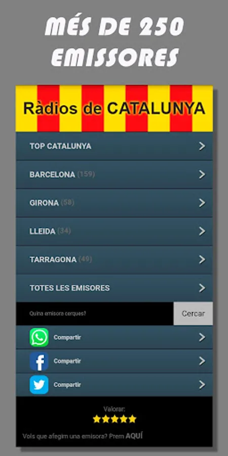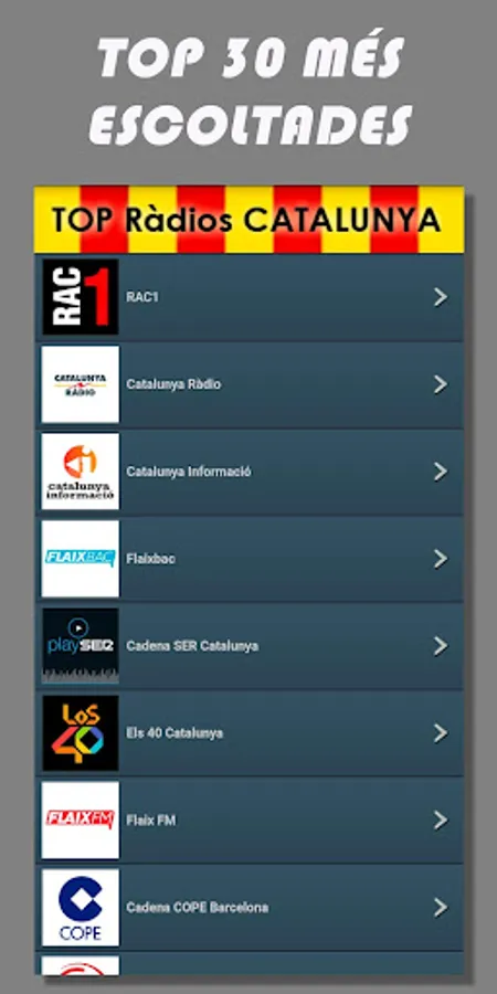 You will also have a TOP Ràdios de Catalunya so you can easily find the most popular and listened to stations.