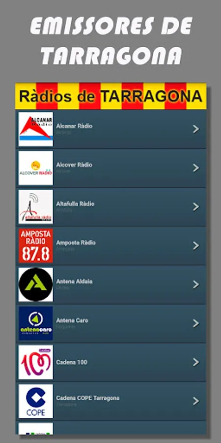 In this application you will find the local stations of towns and cities as well as the most popular stations in Catalonia and Spain.