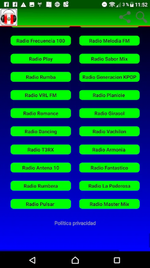 With Live Radio from Peru you can listen to the best FM radio stations and follow your favorite programs and podcasts for free. You can choose between sports programs, music of all kinds, etc.