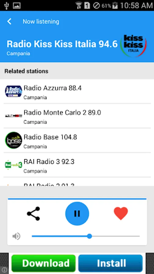 Radio Italy is a great app for listening all the radio stations from Italy on your Android. This app is really easy to use and it's very fast. You can stream your favorite radio channel at any time. You will be really happy with this app, try it!