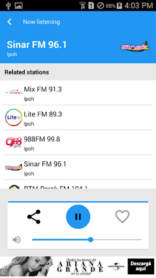 Radio Malaysia is a great app for listening all the radio stations from Malaysia on your Android. This app is really easy to use and it's very fast. You can stream your favorite radio channel at any time. You will be really happy with this app, try it!