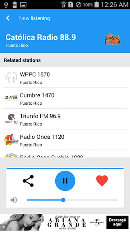 Radio Puerto Rico is a great app for listening all the radio stations from Puerto Rico on your Android. This app is really easy to use and it's very fast. You can stream your favorite radio channel at any time. You will be really happy with this app, try it!