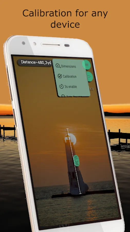 After calibration, it measures a sufficiently accurate distance to the object, if the height or width of the object is known, within the limits of the camera's view of your device.