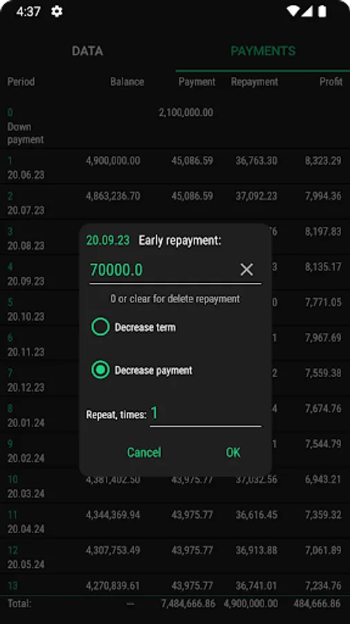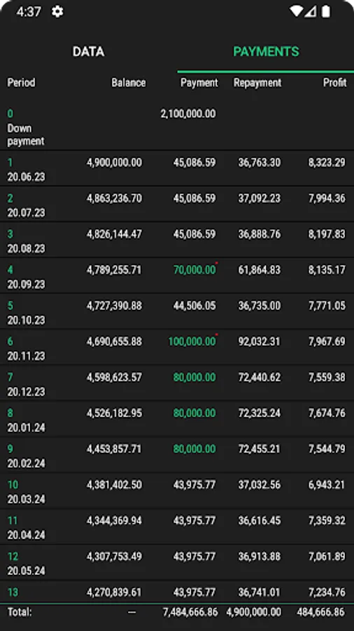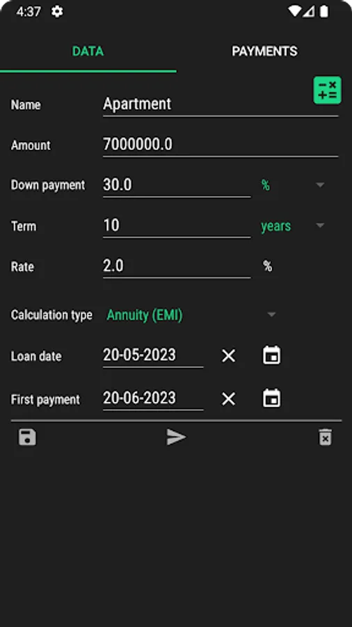 Calculation of any loan - mortgage, auto loan, consumer credit. Ability to compare calculations with different credit conditions. Simple and intuitive interface. The calculation is made instantly when data is entered.