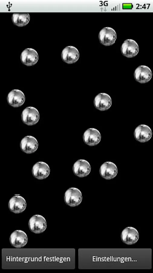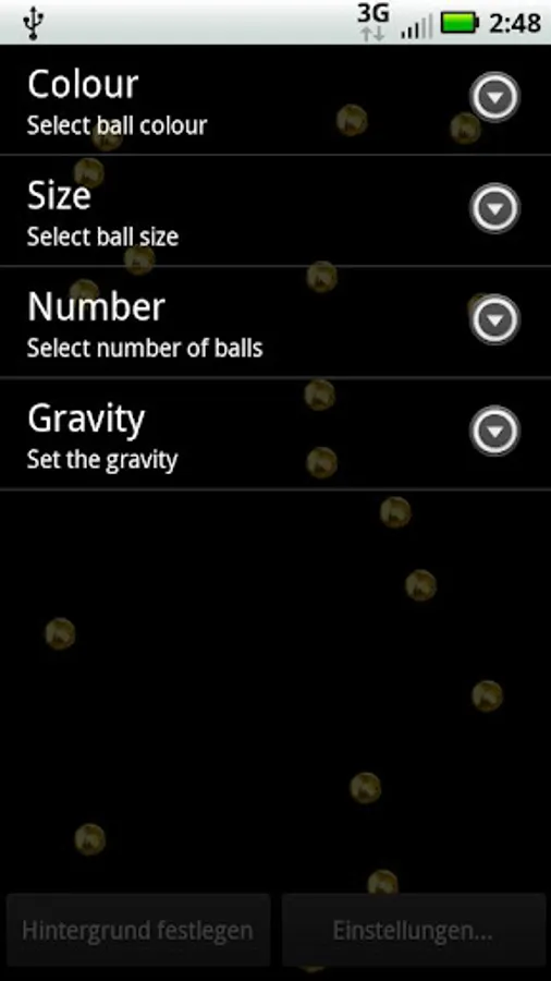 Boxed Balls simulates balls rolling on your home screen. The free version implements gravity and two different colours and ball sizes. For more functions consider buying Boxed Balls Pro with many more features and options like backgrounds, repulsion and haptic feedback.