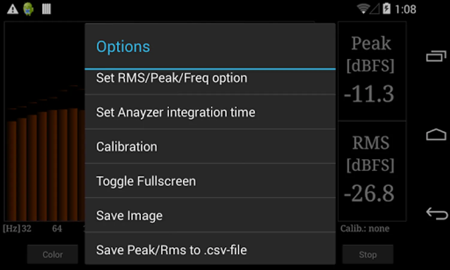 Professional version of the RTA audio analyser. Adds 1/4, 1/6 and 1/12 analysation band spacing with up to 120 bands, scalable peak holds and more colour schemes. Permanently stores calibration data. Screenshots can be saved and peak / rms values can be exported to a .csv file.