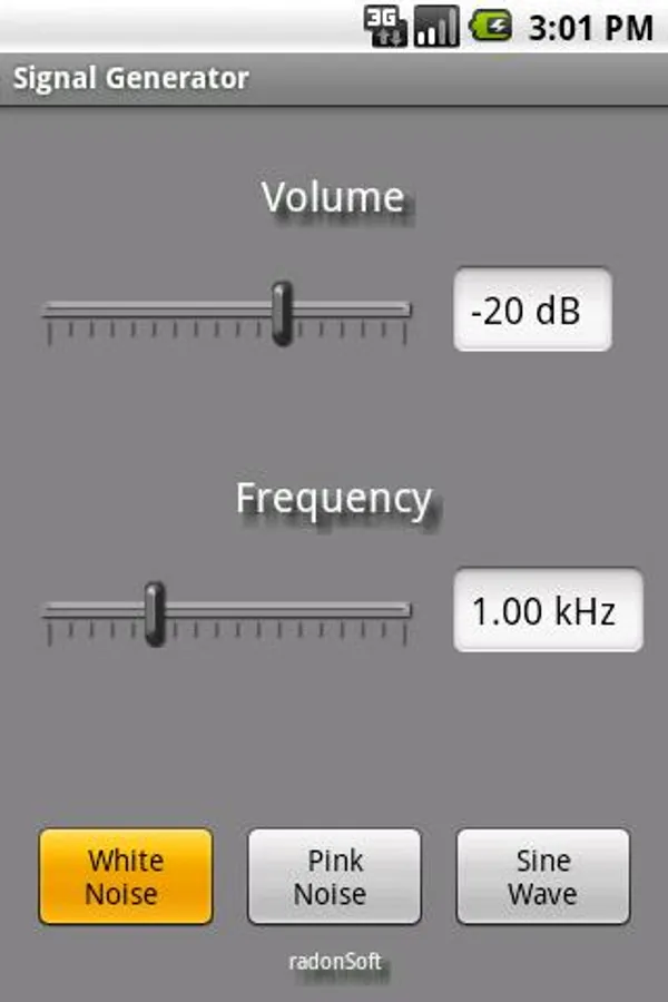 Easy to use audio signal generator that creates white- and pink noise as well as sine waves.