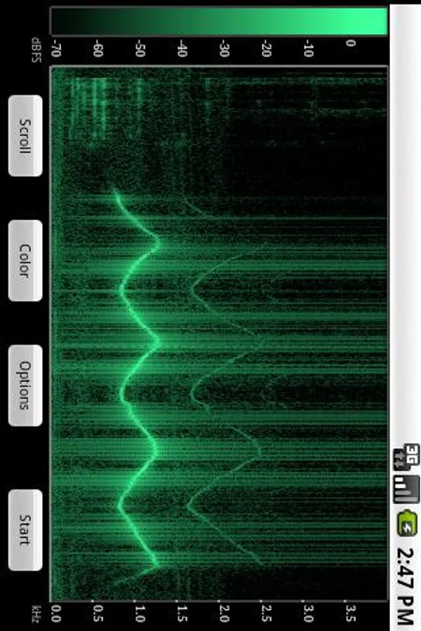 Free real-time audio analyser with 8 kHz spectral bandwidth. Display any sort of audio from the microphone as a coloured spectrogram. Identify environmental noise, search for annoying tones, view harmonic patterns of instruments and voices, analyse the frequency range of your speaker... .