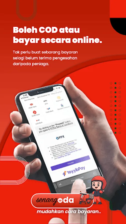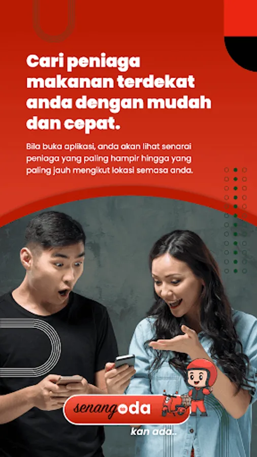 Apabila Penguna buka aplikasi, akan nampak dengan mudah senarai peniaga yang paling hampir hingga yang paling jauh. Tiada sebarang bayaran diperlukan selagi peniaga belum mengesahkan pesanan anda.