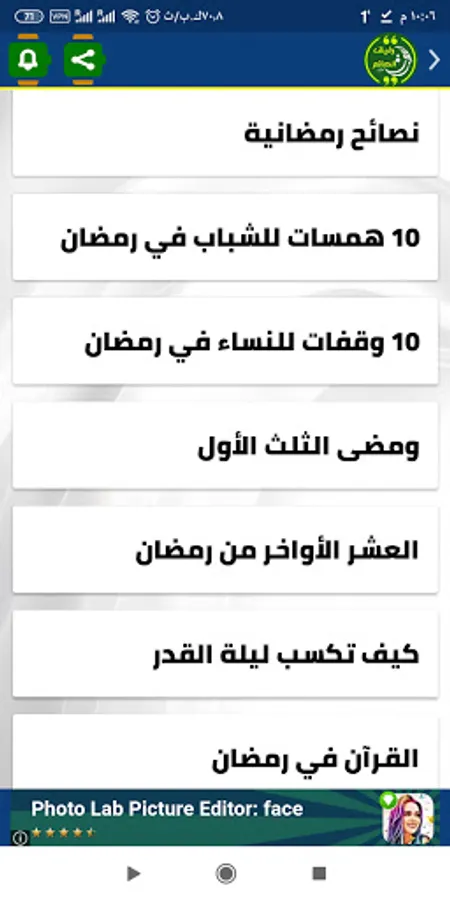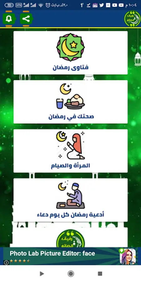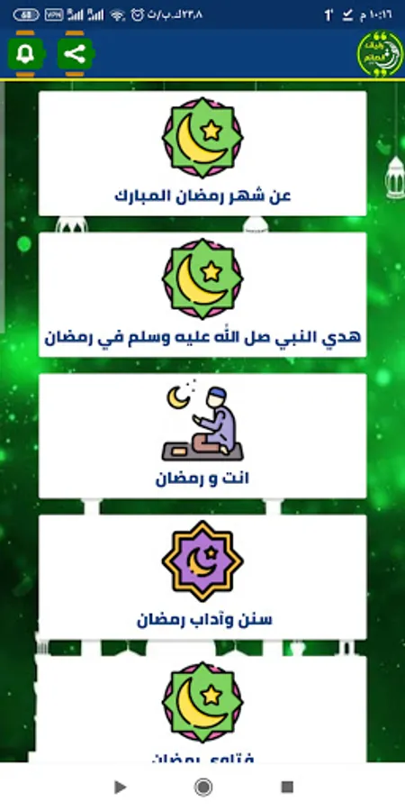 The fasting companion application, which includes everything that a fasting person may need - especially in the month of Ramadan - from: fatwas, medical advice, faith directives, and supplications. A special section for women has also been added that contains fatwas for women regarding fasting.