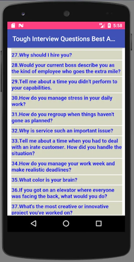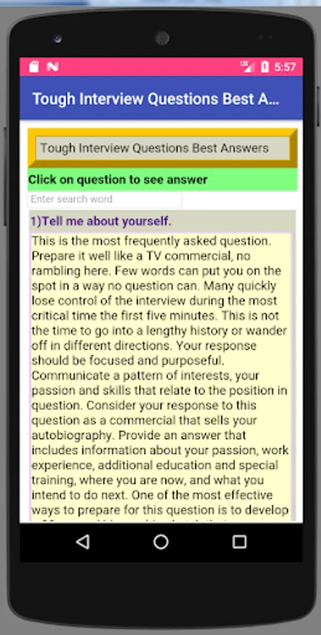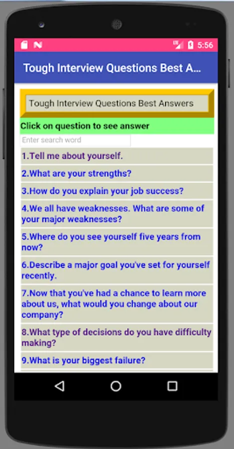 This app provides 90 most frequently asked Interview questions with hints and sample answers.