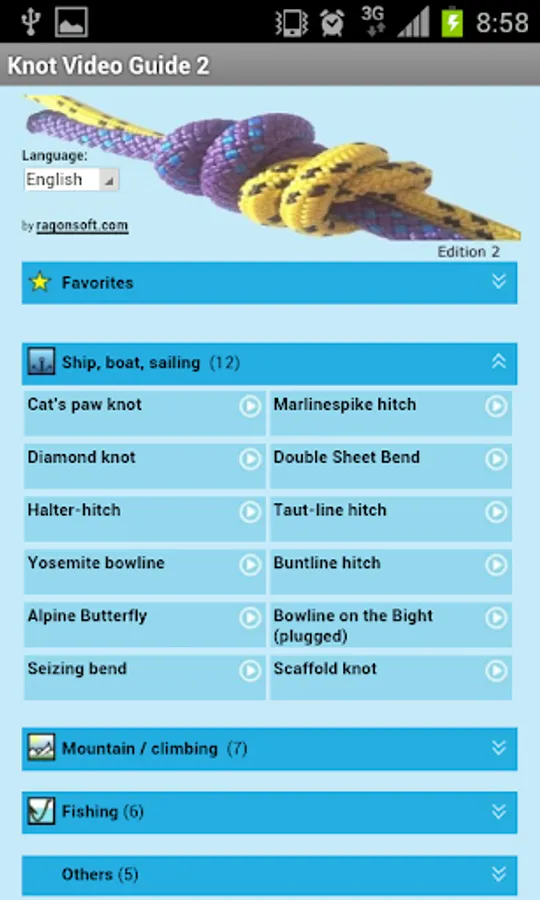 "Knots Video Guide" - Edition 2! 30 additional Knots with video really easy to learn! App for tie Knots. Suitable for sailing, boating, rock climbing and fishing.