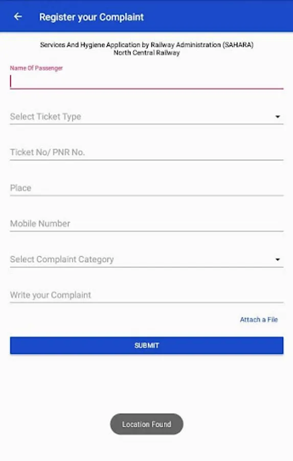 The passenger will log the complaint with some basic details like Name, Mobile no, Complaint Type etc,
