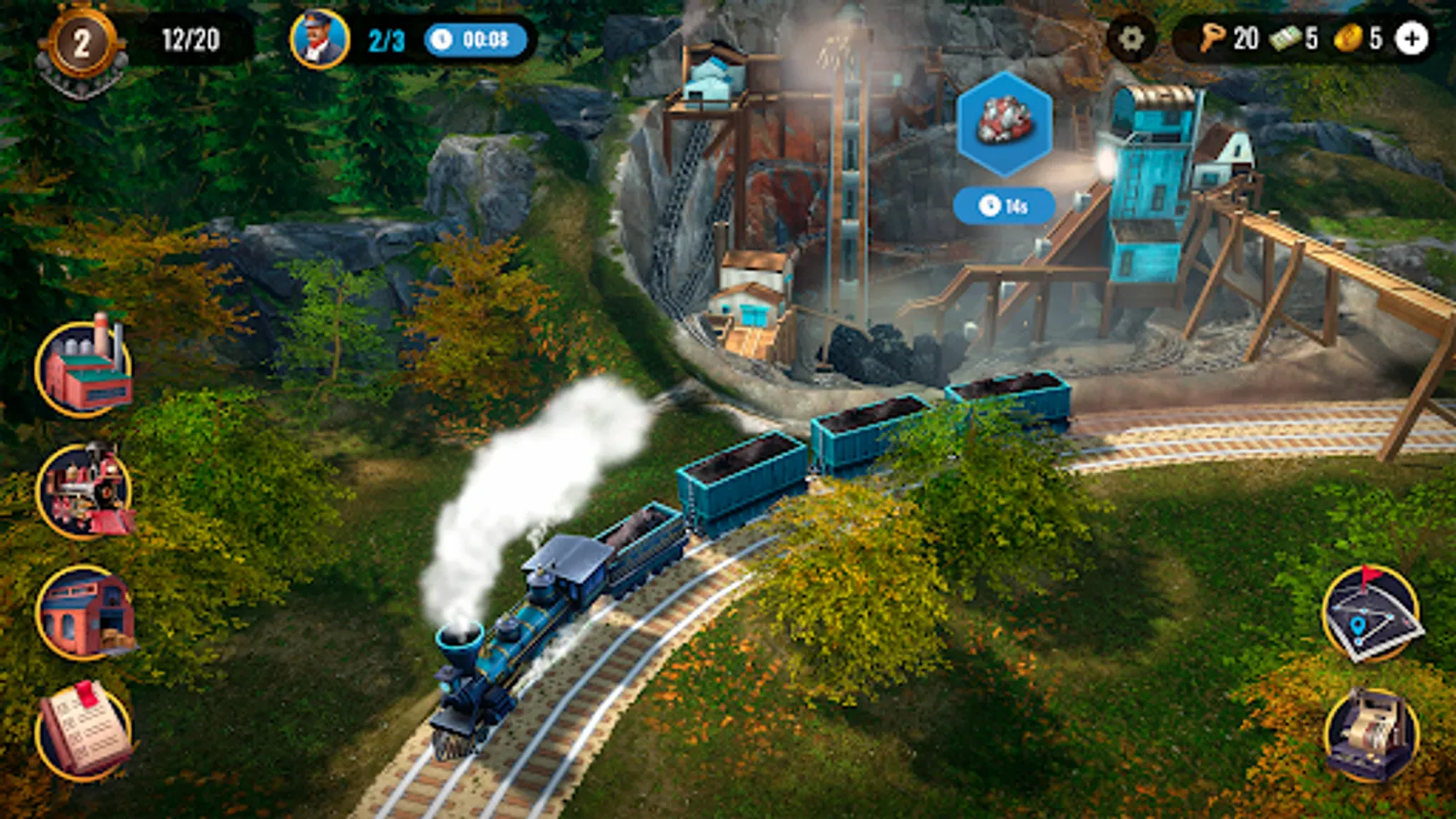Despite all of the above, the game is easy to play, and the beautiful environment, detailed map, and train sounds make the gameplay enjoyable and meditative, unlike other train games. Gather resources with one finger, just like in idle tycoon, and start your rail life across America!