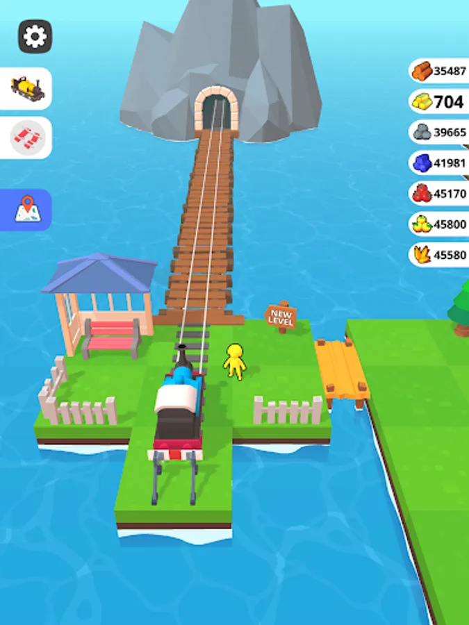 Develop your city train station with city & train buildings and produce various products. You need to collect gold, wood and stone, spread the railway. After connecting to the railway, the train will start passing and run. You can get your revenue.