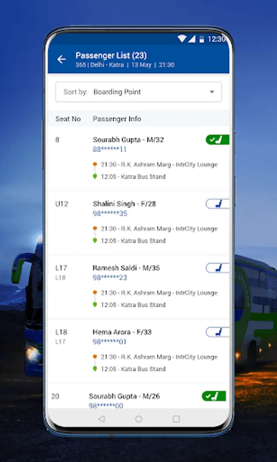 This App will allow crew member to on board passengers and report issues in bus. Crew Member will be able to mark bus as started.