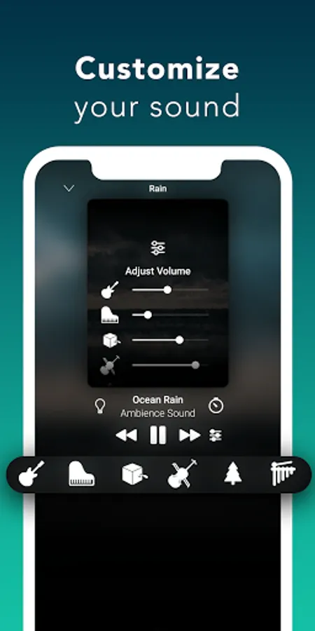 You can adjust the volume of rain, thunder and music individually to find the ideal combination and so encourage a deep relaxation of the mind.