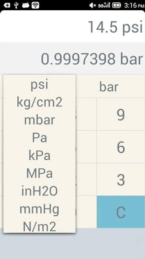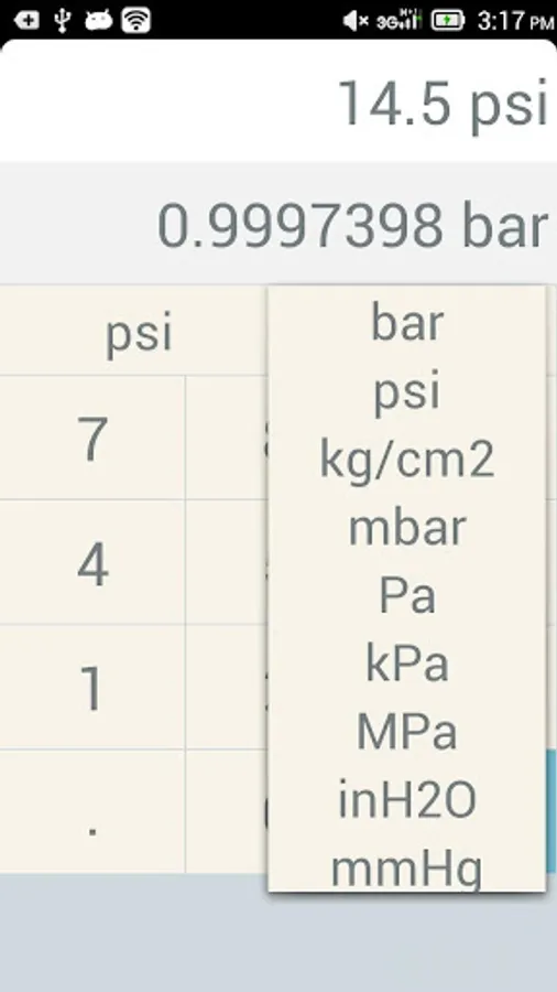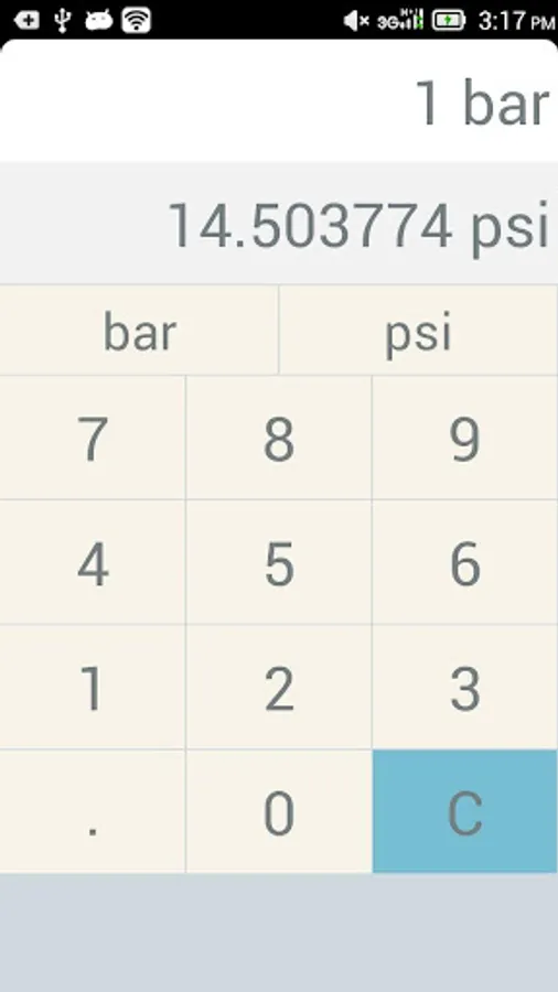 simple app to convert between bar and psi pressure unit.
