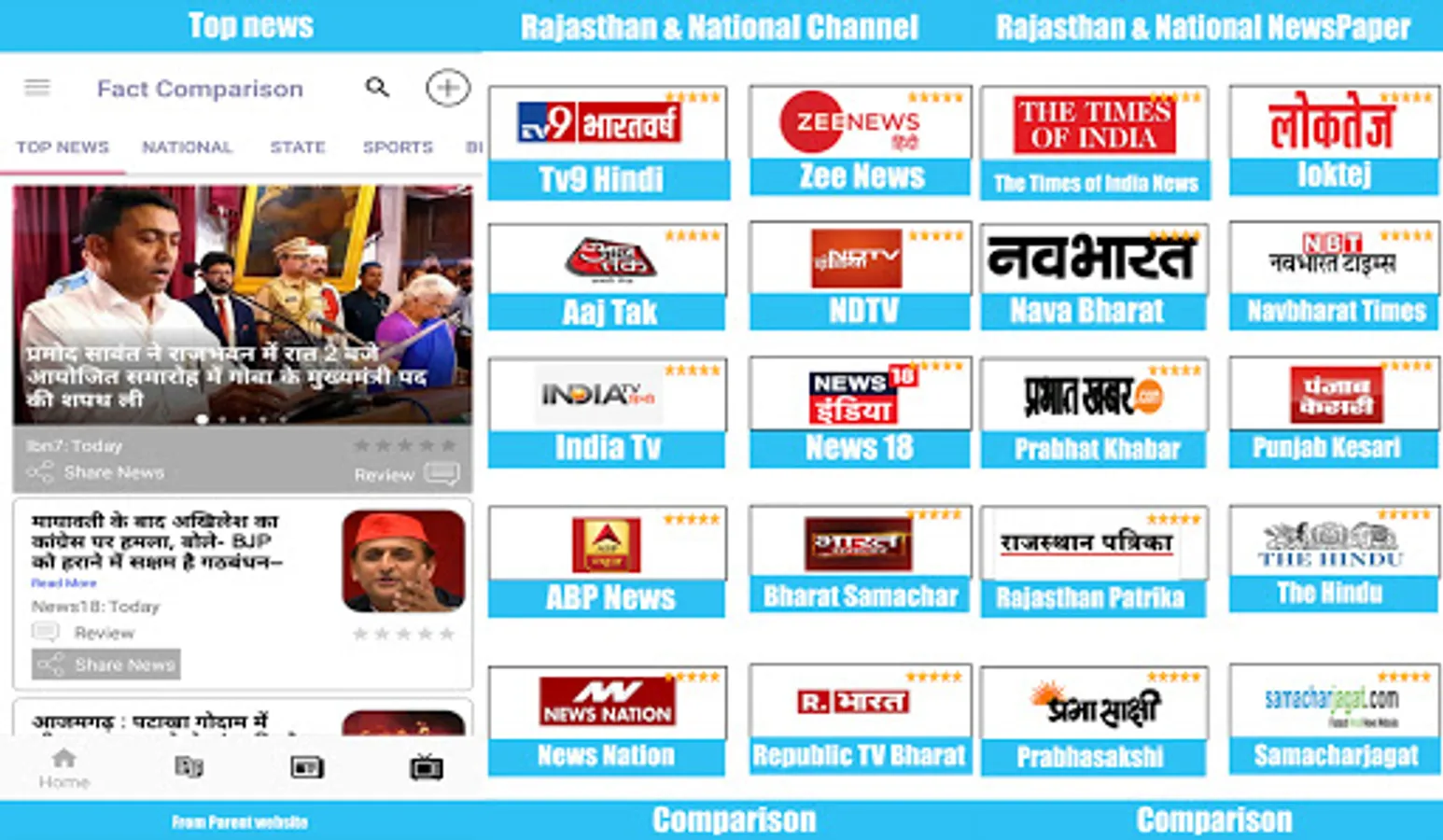 A simple way to gather media and news, and compare news and media. The Rajasthan News Channel app is a News aggregator platform with a news and media comparison facility.