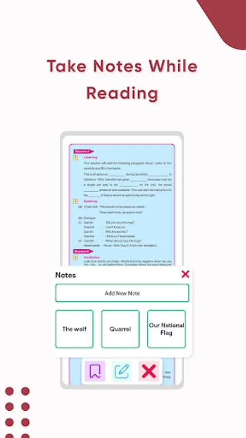 You can note down the essential points as simple notes in this app while studying, which is a great advantage for you. By using the bookmarks feature you can easily find the areas and pages where you left off.