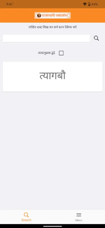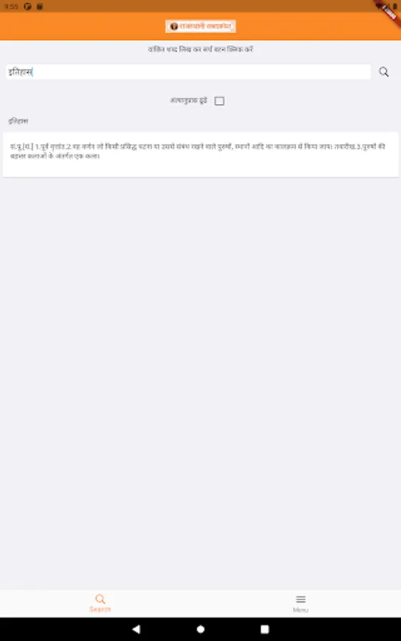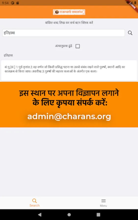 The Vrihat Rajasthani Sabadkosh (Dictionary of Rajasthani Language) edited by Padma Shri Dr. Sitaram Lalas is counted as one of the largest dictionaries of the world with about 2.5 lakh words. Through this mobile app, you can search any word of the Sabadkosh and get all its information in one click. If your word is not available then a list of similar words will appear from where you can choose your word. Apart from this, there is a special feature for poets, i.e. rhyming search, where you write any word and tell how many characters of rhyming you want to find, this app will show you the words according to the given rhyming, in which you can choose your word.