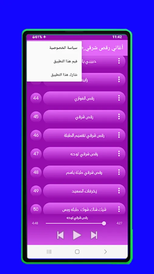 We have provided you with an application that contains many belly dance songs in one application and in a small size.